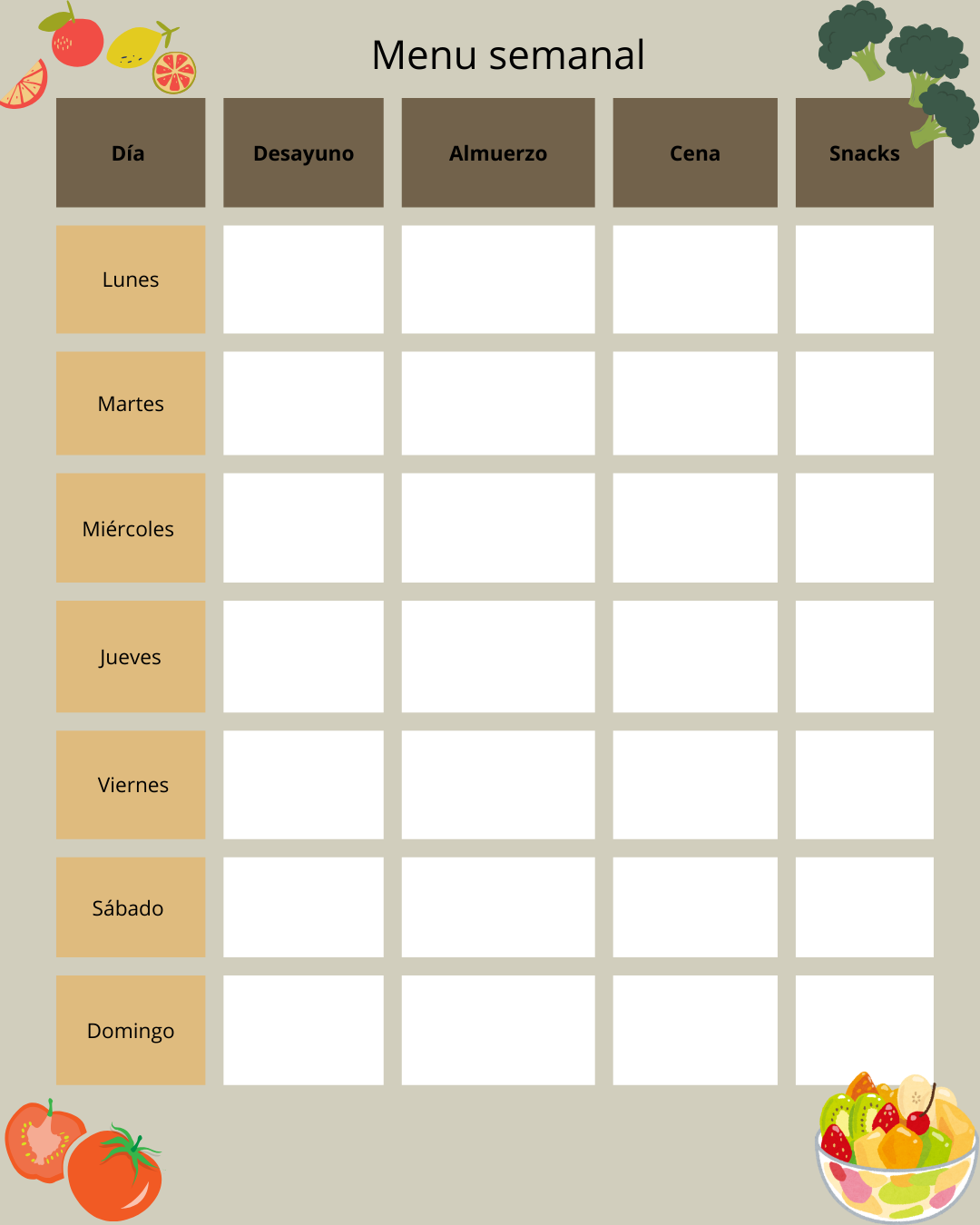 Con esta plantilla editable y lista para imprimir, tendrás tu menú semanal y lista de compras siempre a la mano. Organiza tus comidas, ahorra dinero, evita desperdicios y disfruta de la tranquilidad de saber qué cocinar cada día.